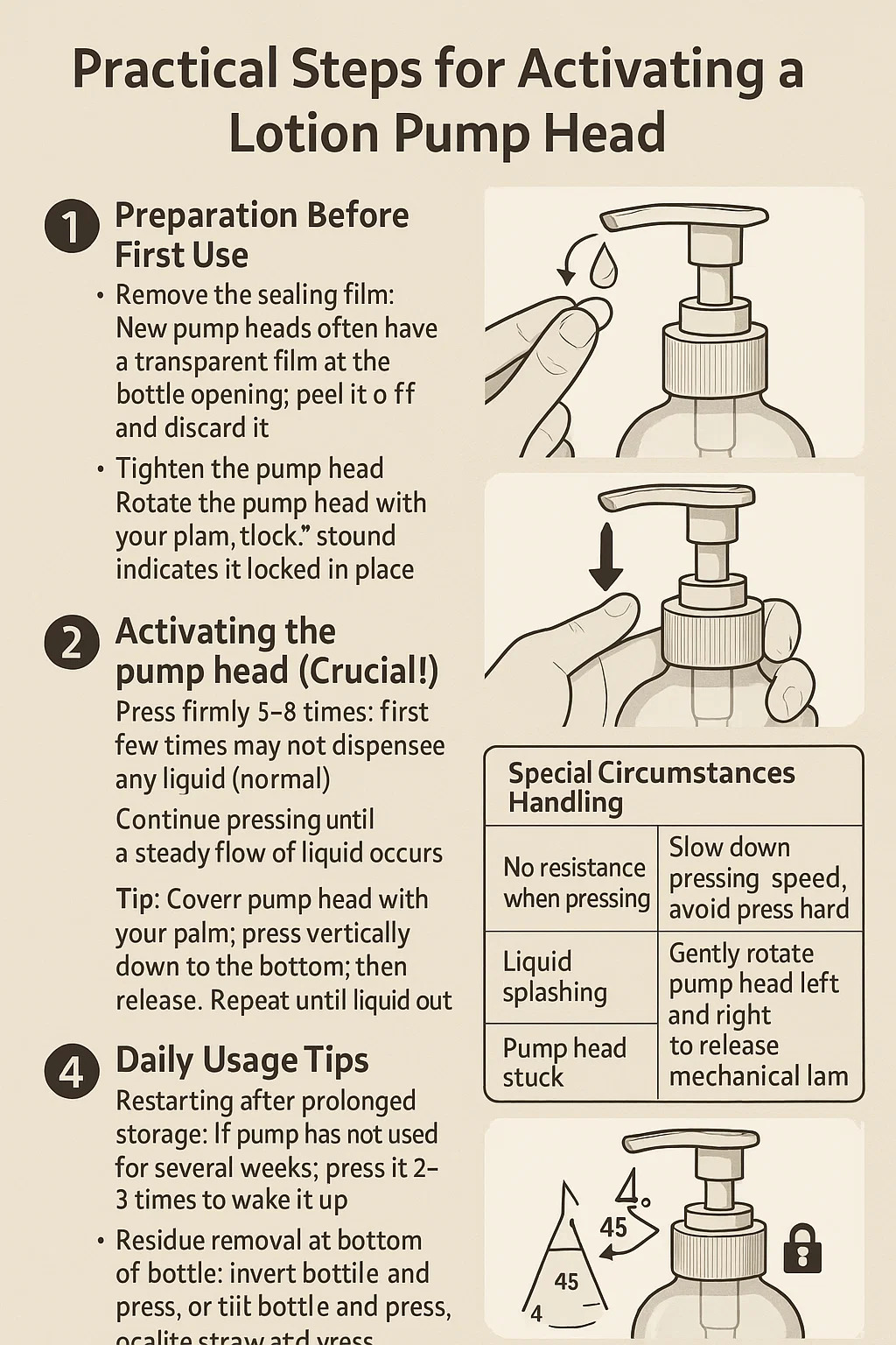 একটি লোশন সক্রিয় করার জন্য ব্যবহারিক পদক্ষেপ পাম্প হেড